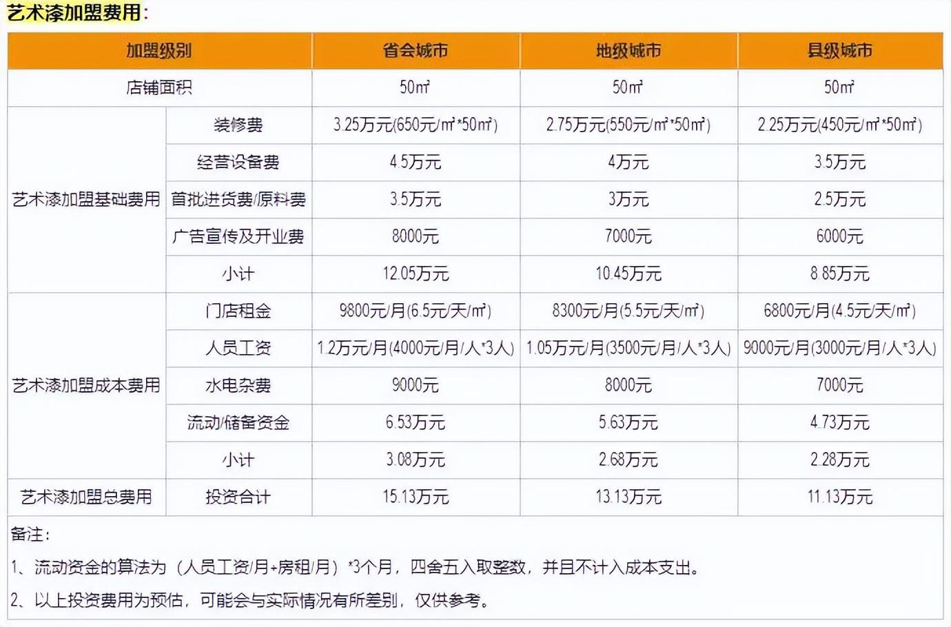 艺术漆加盟费用参考如下: