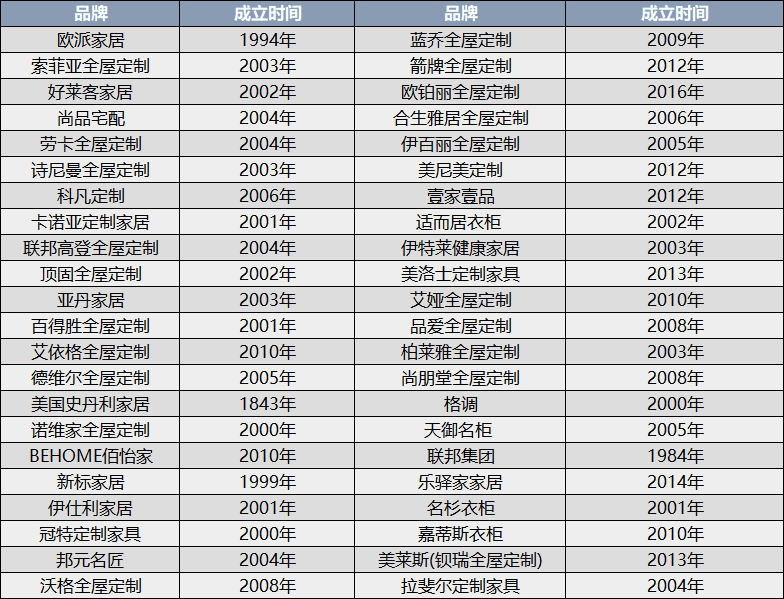 所以,全屋定制意向经销商在选择品牌时,可通过品牌的成立年份去评判这个品牌的“生存力”,
