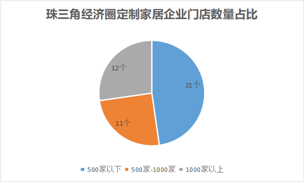 看完厂房情况,接下来龙博士带你们看一下各个品牌的门店数量情况,龙博士对珠三角经济圈定制家居企业门店数量在500以上的品牌 进行了整理: