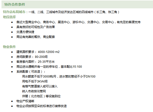 维也纳酒店的物业条件门槛较高,但投入资金较低。