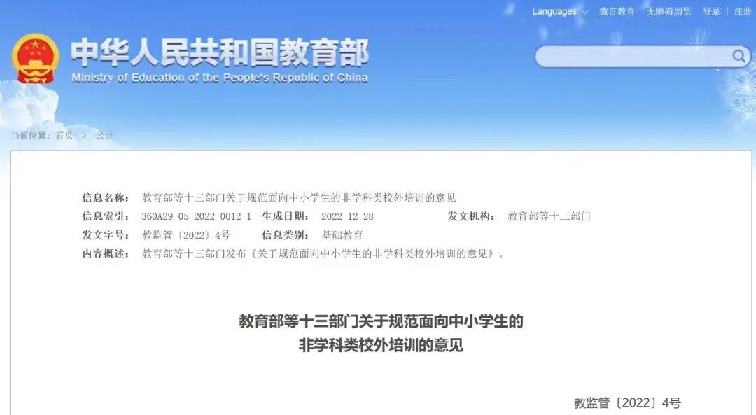 2022年,教育部等十三部门发布了《关于规范面向中小学生的非学科类校外培训的意见》(以下简称“《意见》”),其中针对非学科类校外培训的预收费和退费等问题作出了系统部署。