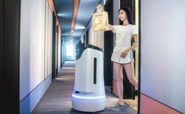 除了加盟费等费用等减免,酒店企业正在通过无人化科技服务来减少人与人之间的接触,保障安全。