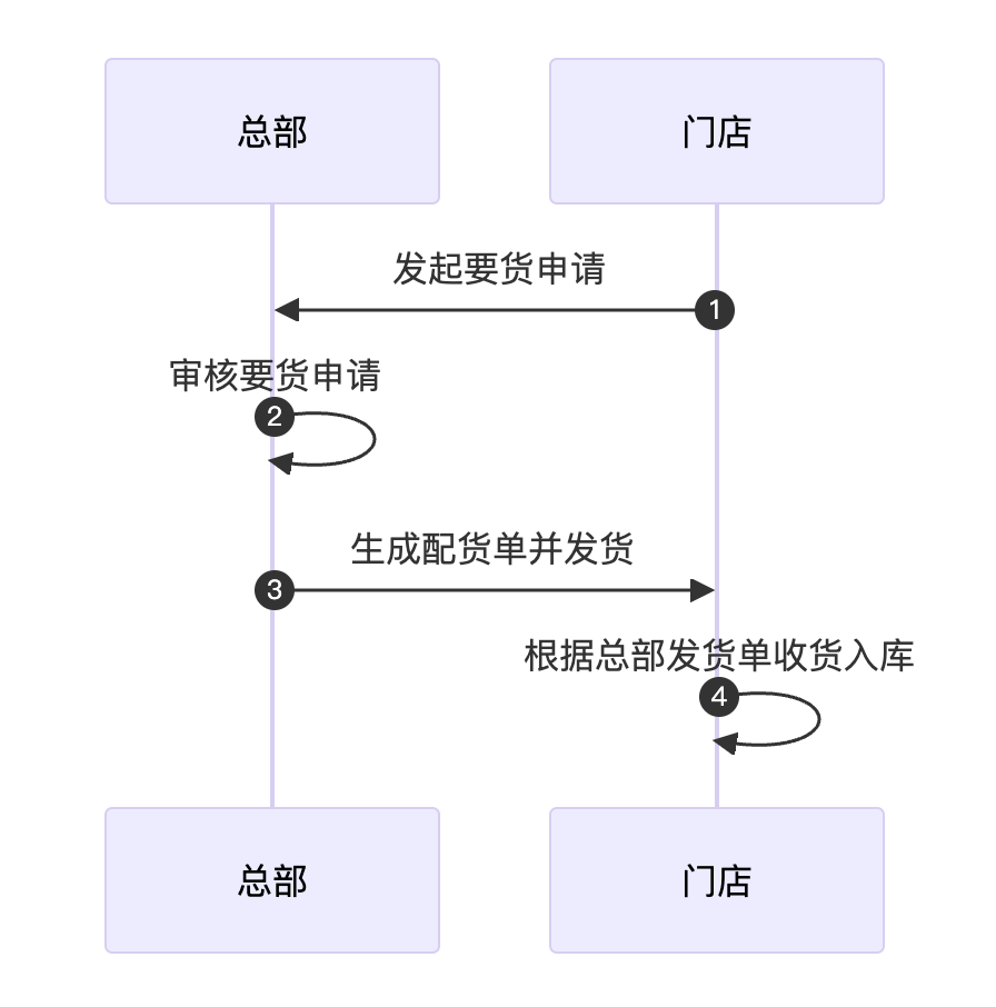 总部和门店之间的业务单据有非常之多,不同的组织架构,不同的业务模式都会导致业务单据的差异,这里我们以最常见的“门店要货场景”为例,来拆解加盟店和直营店的业务单据差异。