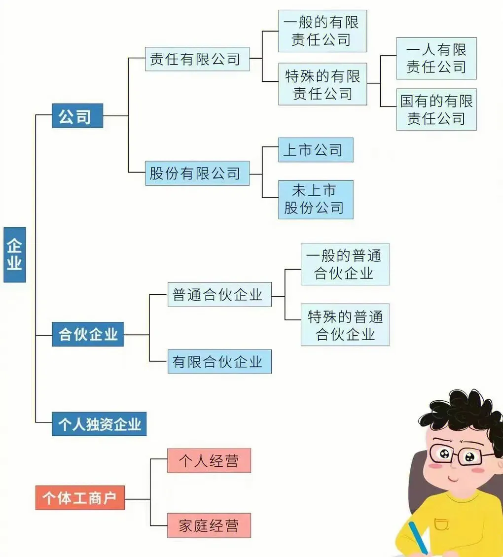 上面提到,一般零售的门店主体类型是“企业”居多,在“企业”这个类型下有可以细分,细分之后对应的是“公司”居多,但是公司和公司之间也会有一些细微的区别,一般常见的几种公司类型如下: