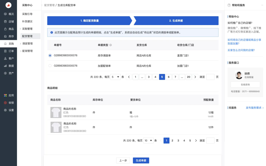 如果门店是加盟店,那么采用“加盟配销单”的方式来承载,货主从总部转移到了门店,同时货物的存放位置也发生了变化。