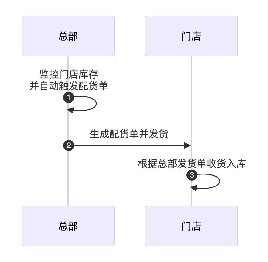 当门店的库存不足之后,会向总部发起要货申请,请求总部发货到门店中补充库存;或者说总部根据搭建好的库存监控报表,及时触发自动配货的计划,将库存配货给门店。