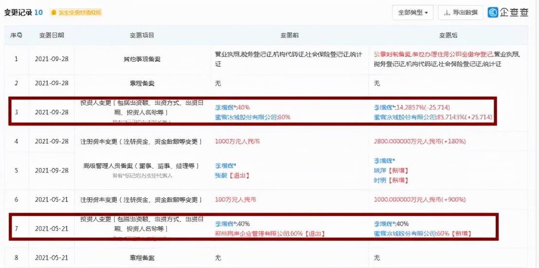 从企查查平台查询得知,2021年蜜雪冰城前后两次变更对极拉图的投资占比,由原来占比投资60%提升至85.7%。