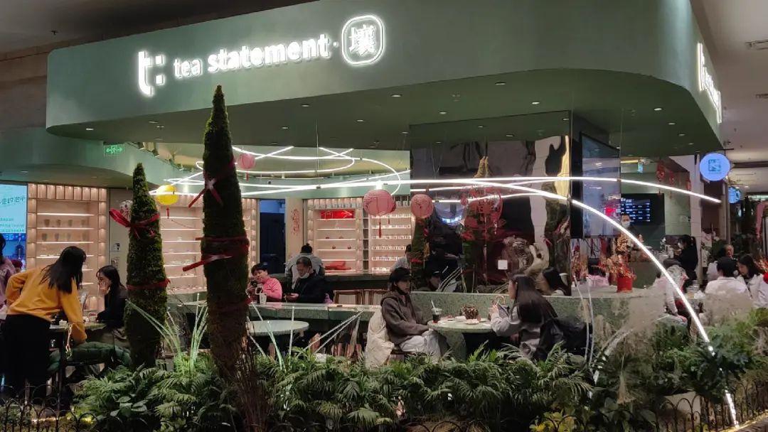周一下午,朝阳大悦城6层,和星巴克仅有一店之隔的新中式茶馆“tea statement”,熙熙攘攘,里面坐满了“茶客”。