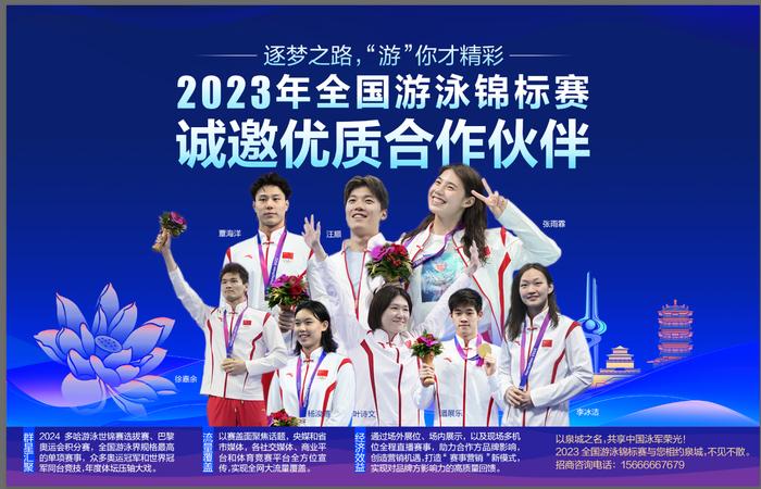 以泉城之名,共享中国泳军荣光,2023全国游泳锦标赛与您相约泉城,不见不散。招商咨询电话:15666667679。
