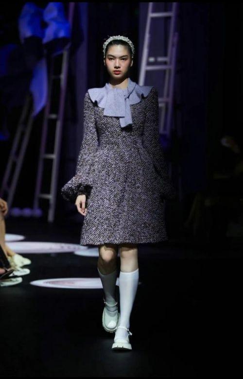 在人群中,小公主总是最为闪耀的一个,mithworld用蓝色与紫色构筑梦幻空间,采用灯芯绒、针织、薄纱等材质交叠呈现出如星星般的闪耀光芒,层叠褶饰、廓形泡泡袖、甜美桃心领诠释星光灿烂般的美学语言,宽松廓形与修身设计并重,在厚重的秋冬也不缺少灵动之感。